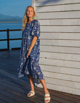 This stunning piece has it all- comfort, style and mood. Style it buttoned high for an elevated look, or choose a more relaxed look for warm summer days! This dress is fully lined.