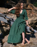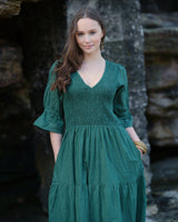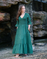 The Kaaya maxi in Jade is dreamy and strikingly beautiful! This silhouette catches the eye at any occasion! It has pockets too!