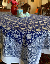 This beautiful cotton tablecloth is traditionally hand- block printed with wooden blocks. A perfect addition to your dining table or use it anytime to add some warmth and joy to your home.