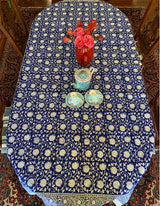 The best care was taken to replicate the colours as closely as possible in the photograph. As the tablecloth is block printed, variations within the print are to be expected, and are actually a feature of its handmade quality.