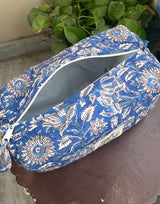 Our large toiletry bag is crafted from quilted block-printed cotton fabric, making it a stylish and practical choice for your essentials. Perfect as a makeup or toiletry bag, it can hold all your must-have items for travel or everyday use.