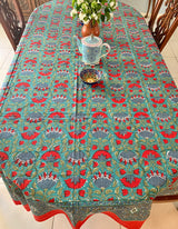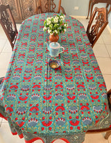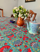 The best care was taken to replicate the colours as closely as possible in the photograph. As the tablecloth is block printed, variations within the print are to be expected, and are actually a feature of its handmade quality.