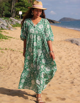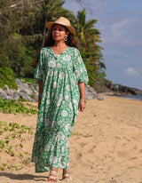 Neera maxi is now available in Emerald. This stunning piece has it all- comfort, style and mood. Style it buttoned high for an elevated look, or more relaxed look with the denim jacket and boots. This dress is fully lined.