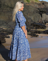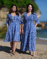 Make a statement in our blue and white dress, designed for the ultimate beach look. With its light, airy fabric and vibrant colour combination, it's the perfect choice for sunny days by the shore and warm, breezy evenings. Or pair it with boots and a jacket for cooler days, making it a versatile piece for any season.