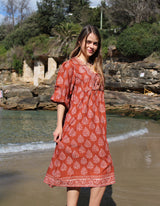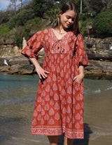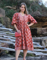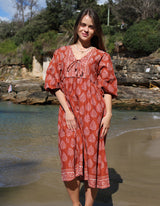 There’s something dreamy about the Bali Midi in Maple — like golden sunlight on warm skin. Made from our soft cotton suede( new fabric), it feels gentle and breathable, with a drape that only gets lovelier after each wash. Slip her on with bare feet or simple sandals and let her take you from lazy mornings to candlelit evenings. It has pockets!