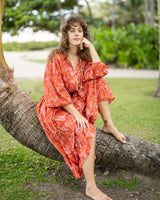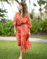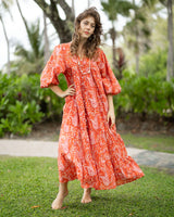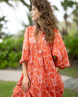 A shorter take on our beloved Ishani silhouette. It has no seam at the bust, giving it an easy, flattering drape that suits all shapes and sizes. Full-length sleeves add a little drama (but can be pulled up on warmer days), and the generous, tiered shape makes it a dream to wear. Oh — and of course, it has pockets!