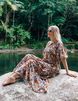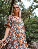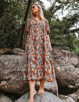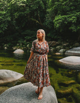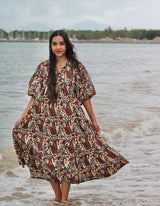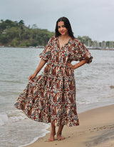 A perfect dress for your next tropical holiday. Feel the feminine spirit of nature in this bold and earthy Rani print.