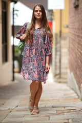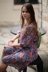 Easy, flowy, and full of attitude — our new grey-and-pink paisley Hawa Mini brings style and comfort to your everyday wardrobe. Hand-blocked, breezy, and made for carefree days (yes, it has pockets!).