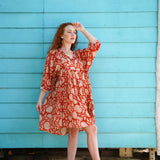 Our Hawa dress is made for dreamers!! This beauty looks gorgeous on all body types. As well as that, it’s probably the most comfortable dress you will ever wear! Made with super soft cotton fabric that is hand-block printed in India, the print and style is designed in Australia by owner Shweta Bonneau.