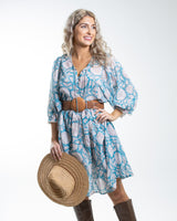 Hawa Short Dress In Sky Sunflower